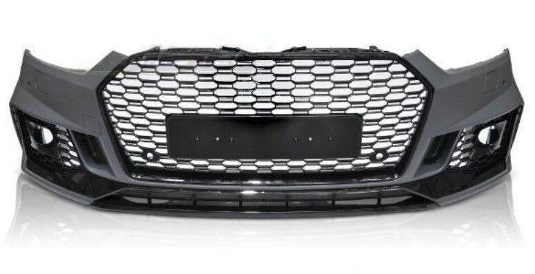Ce pare choc est livré complet,avec la calandre look RS5 noire ou avec frame chromé (sans le logo Audi) les emplacements PDC et les grilles laterales inferieures pour antibrouillards + les unités ECU anti erreurs.