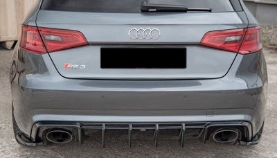 Ce diffuseur en abs est compatible uniquement avec les AUDI RS3 8V SPORTBACK Phase 1 2015/2017 dotées d'un echappement type Duplex à simple sortie ovale droite/gauche, identique aux visuels joints