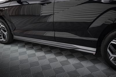 Les éléments livrés ici sont les inserts noirs (tout en bas des photos),à rapporter directement sur les bas de caisse d'origine de votre HYUNDAI KONA II N LINE depuis 2022..ils ne montent pas sur KONA II Standard.
