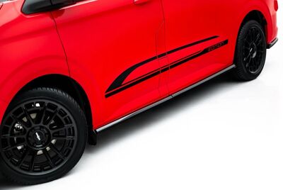 Les éléments livrés ici sont les inserts noirs (tout en bas des photos),à rapporter directement sur les bas de caisse d'origine de votre FORD TRANSIT ou TOURNEO CUSTOM L2 MK2 Phase 1 ou Volkswagen Transporter L1 T7