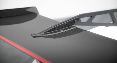 Le plateau du spoiler est fabriqué en fibre de carbone selon la méthode préimprégnée - la méthode la plus moderne de traitement du carbone, utilisée dans l'industrie automobile pour la production d'éléments aérodynamiques et de monocoques, de joints, d'arceaux de sécurité, etc. Cette méthode consiste à disposer correctement des feuilles de carbone dans un moule également en carbone, tandis que le traitement est effectué à l'aide d'un autoclave - dans lequel un élément de carbone léger et extrêmement durable est créé à l'aide de la pression et de la température appropriée.