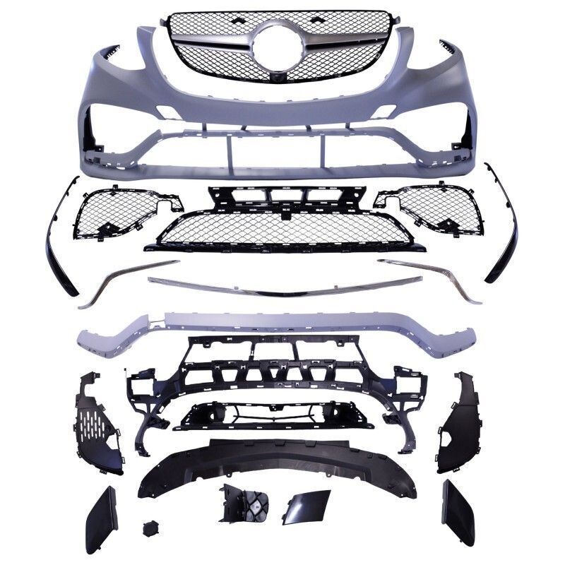 Avec emplacements PDC,cache trappe de remorquage,grille centrale et grilles latérales,ornements décoratifs,supports de plaque d'immatriculation,absorbeur et necessaire de montage.