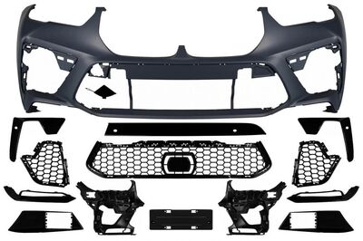 Le kit est composé d'un pare choc avant complet avec grilles et emplacements PDC,d'un pare choc arrière avec diffuseur et emplacements PDC,embouts d'echappement noirs 2 sorties,et d'un jeu de quatre extensions d'ailes