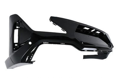 Pare-chocs avant équipé d'une grille centrale inférieure, d'ornements latéraux et d'un cache-crochet d'attelage.