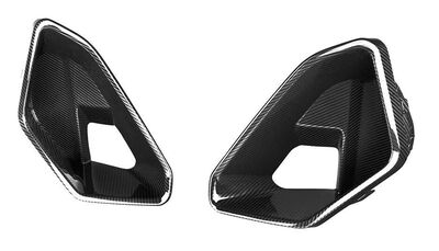 Un peu de peps pour votre X6 G06 phase 2 LCI Pack M,histoire de pimenter un peu le look d'origine trop sage! Proposés en carbone et à poser tels quels autour des entrées d'air de série de votre pare choc avant