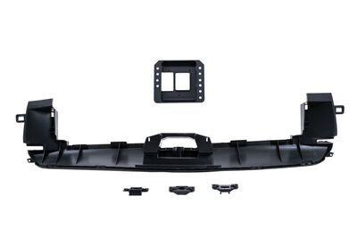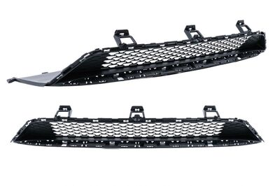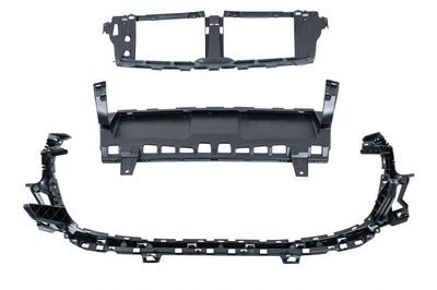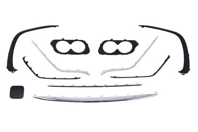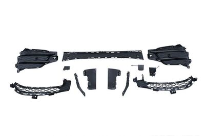 Pare-chocs avant équipé d'une grille centrale inférieure, de grilles latérales, de supports PDC, d'un couvercle de crochet de remorquage et d'une extension de pare-chocs avant.