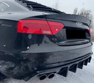 Ce diffuseur est fabriqué specifiquement en abs noir brillant pour votre Coupé/Cabriolet A5 S LINE Coupé,Cabriolet ou Sportback phase 2 2012/2016 avec un silencieux à double sortie gauche