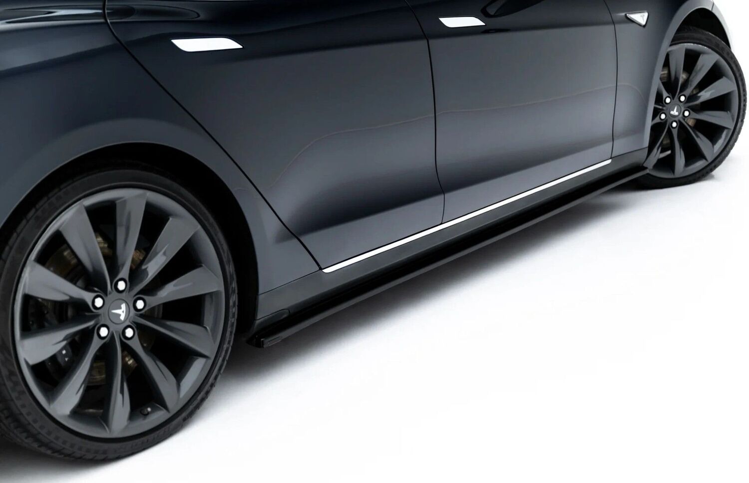 Les éléments livrés ici sont les inserts noirs (tout en bas des photos),à rapporter directement sur les bas de caisse d'origine de votre TESLA MODEL S phase 1 2012/2016