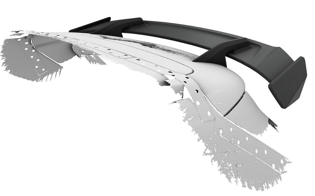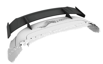 Aileron arrière à col de cygne composé d'une planche d'aileron et de supports spécifiques au véhicule