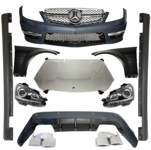 il comprend également un jeu d'ailes avant type AMG,un capot avec bossage caracteristique type AMG,et un jeu d'optiques à leds fond noir pour versions en halogene d'origine pour compléter la panoplie C63 AMG.